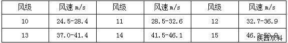 表2 風(fēng)級與風(fēng)荷載強度大小